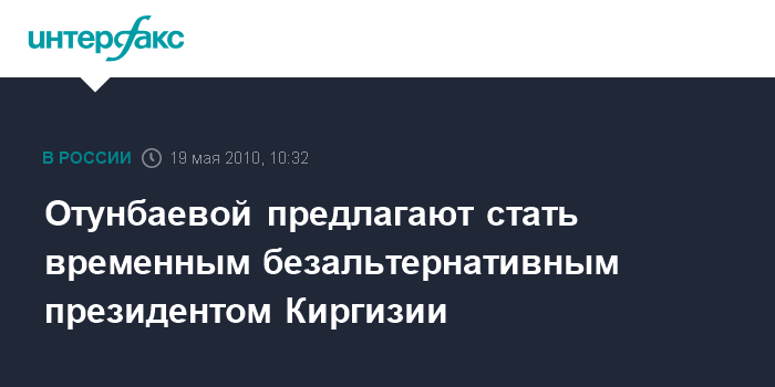 Между тем источники "Интерфакса" во временном правительстве утверждают, что безальтернативным президентом предлагают стать главе правительства Розе Отунбаевой, возглавляющей его с 8 апреля.