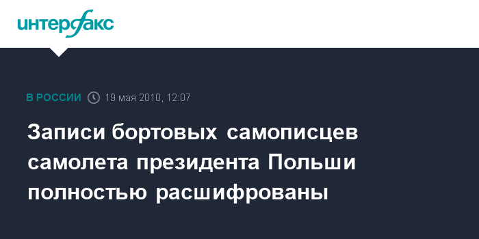 Записи бортовых самописцев самолета президента Польши полностью расшифрованы