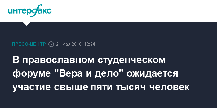 Москва. 20 мая. ИНТЕРФАКС - Более пяти тысяч молодых верующих соберутся в Москве для участия в IV православном студенческом форуме "Вера и дело". Открытие форума состоится 22 мая в столичном комплексе "Кремль в Измайлово".