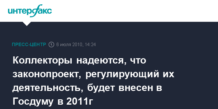 Коллекторы надеются, что законопроект, регулирующий их деятельность, будет внесен в Госдуму в 2011г