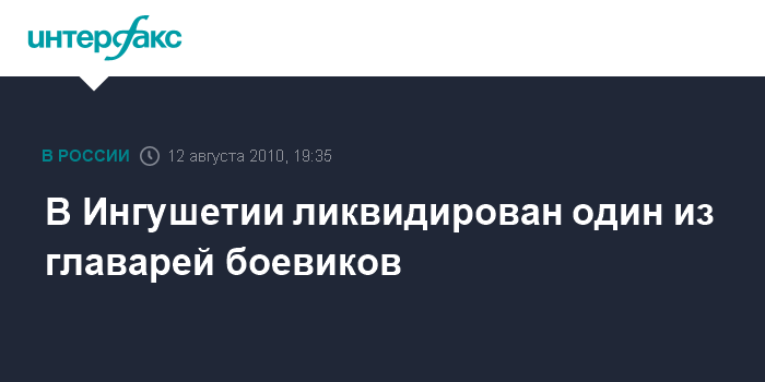 Назрань. 12 августа. INTERFAX.RU - В ходе спецоперации в муниципальном округе "Плиево" города Назрань спецслужбам удалось уничтожить одного из главарей так называемой "плиевской бандгруппы" Харона Плиева.