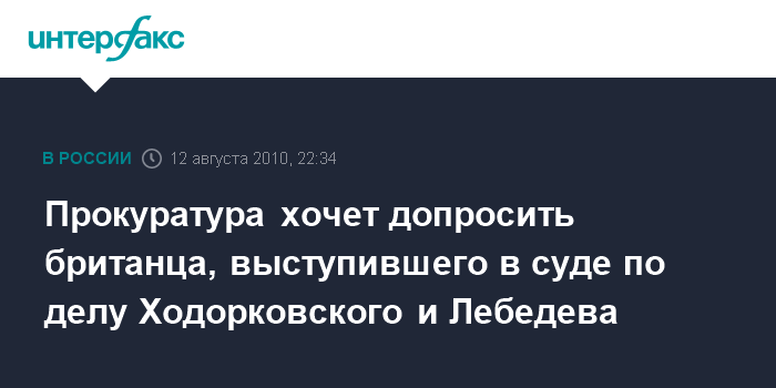 Прокуратура хочет допросить британца, выступившего в суде по делу Ходорковского и Лебедева