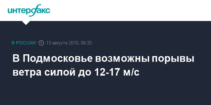 Москва. 13 августа. INTERFAX.RU - В Госгидромете предупреждают о возможном усилении ветра на территории Московской области в утренние часы в пятницу.