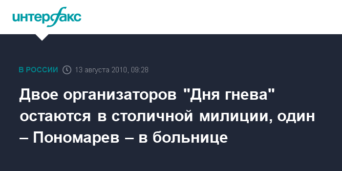 Двое организаторов "Дня гнева" остаются в столичной милиции, один – Пономарев – в больнице