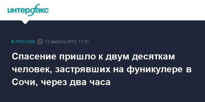 Москва. 13 августа. INTERFAX.RU - В одном из пансионатов Сочи во время движения на высоте 25 метров остановился подъемник, в котором находились 20 человек, сообщила агентству "Интерфакс" пресс-секретарь отряда "Кубань-СПАС" Анастасия Фисенко в пятницу.