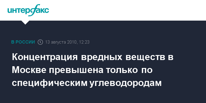 Концентрация вредных веществ в Москве превышена только по специфическим углеводородам