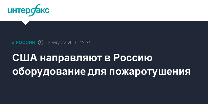 Москва. 13 августа. INTERFAX.RU - Два грузовых самолета из США прибудут в пятницу вечером в Москву с оборудованием для пожаротушения, сообщает пресс-служба американского посольства в России.