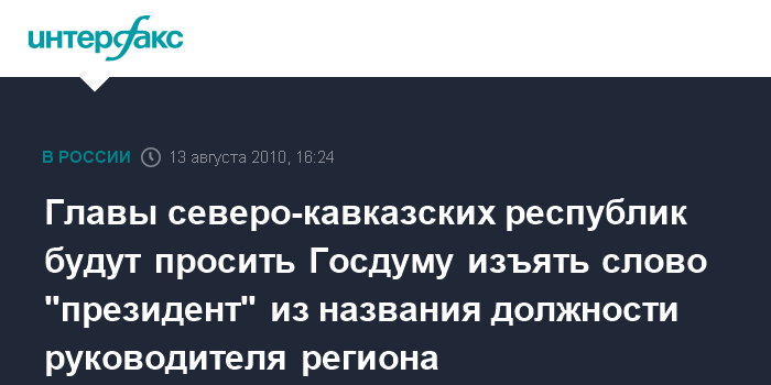 Главы северо-кавказских республик будут просить Госдуму изъять слово "президент" из названия должности руководителя региона
