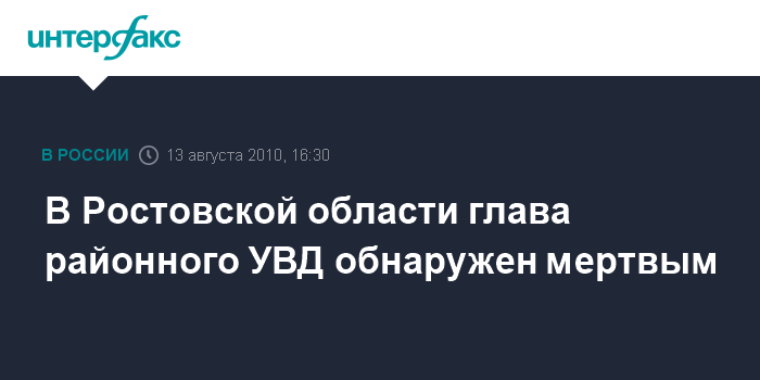 Ростов-на-Дону. 13 августа. INTERFAX.RU - Начальник УВД Кагальницкого района Ростовской области подполковник милиции Евгений Буров обнаружен мертвым в своем рабочем кабинете.