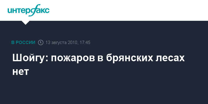 Москва. 13 августа. INTERFAX.RU - Глава МЧС Сергей Шойгу заявил об отсутствии в настоящее время каких-либо пожаров на территории Брянской области.