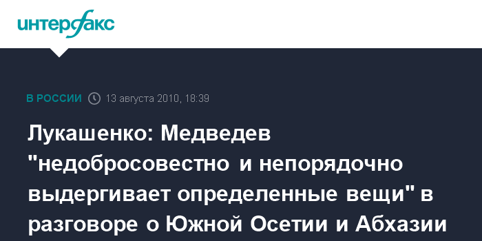 Лукашенко: Медведев "недобросовестно и непорядочно выдергивает определенные вещи" в разговоре о Южной Осетии и Абхазии