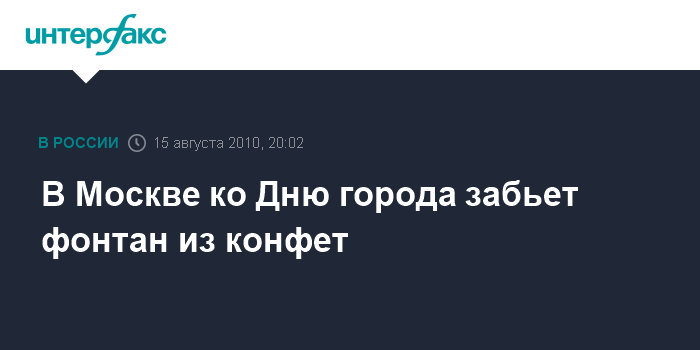 В пресс-службе префектуры заметили, что организаторы конфетного фонтана отказываются раскрывать секреты его действия, но обещают удивить всех маленьких и взрослых москвичей, которые захотят отметить День города в усадьбе Деда Мороза.