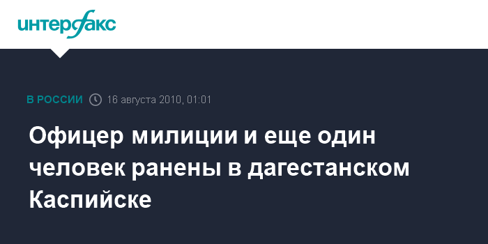Махачкала. 16 августа. ИНТЕРФАКС-ЮГ - Два человека, в том числе сотрудник милиции ранены в результате обстрела в Каспийске (Дагестан), сообщили "Интерфаксу" в пресс-службе МВД республики.
