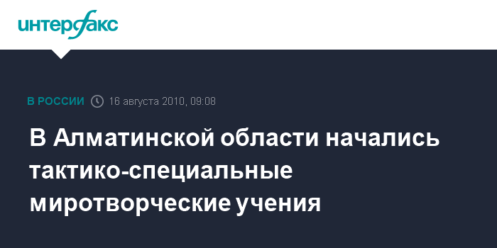 Москва. 16 августа. INTERFAX.RU - В Алматинской области Казахстана на базе учебного центра "Илийский" в понедельник стартовали тактико-специальные миротворческие учения "Степной орел-2010", сообщили агентству "Интерфакс" в пресс-службе Минобороны республики.