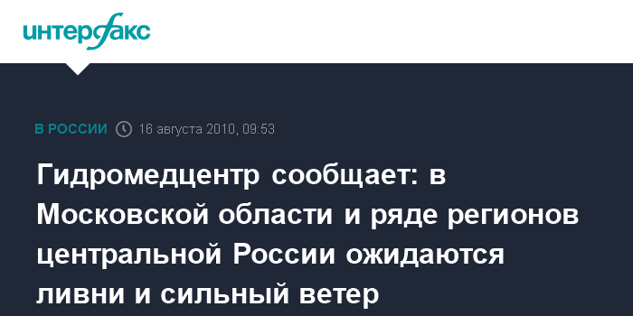 Гидромедцентр сообщает: в Московской области и ряде регионов центральной России ожидаются ливни и сильный ветер