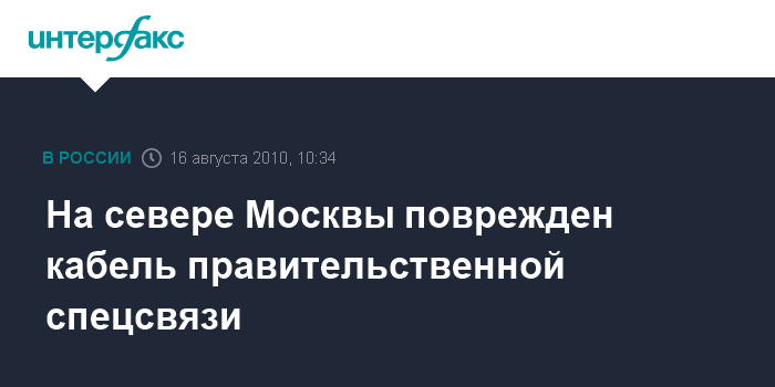 Москва. 16 августа. INTERFAX.RU - Дорожные рабочие повредили на севере Москвы кабель правительственной спецсвязи, сообщили "Интерфаксу" источники в правоохранительных органах.