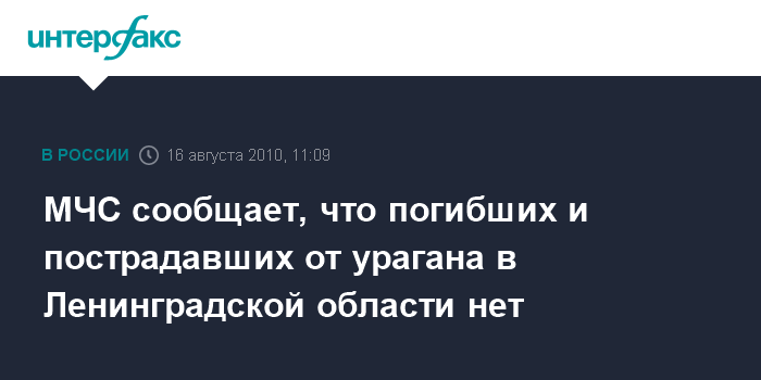 МЧС сообщает, что погибших и пострадавших от урагана в Ленинградской области нет