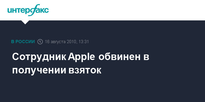 16 августа. INTERFAX.RU - Сотрудник Apple обвинен в получении взяток от поставщиков фирмы в Азии.