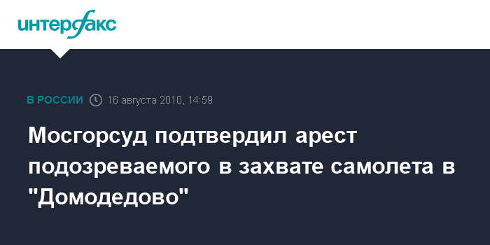 Мосгорсуд подтвердил арест подозреваемого в захвате самолета в "Домодедово"