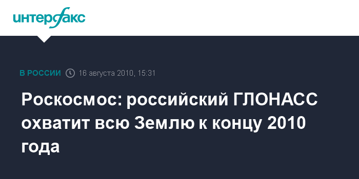Москва. 16 августа. INTERFAX.RU - Российская глобальная навигационная спутниковая система ГЛОНАСС получит всепланетный охват к концу года, заявил в понедельник руководитель Роскосмоса Анатолий Перминов.
