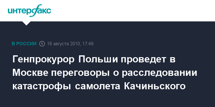 Генпрокурор Польши проведет в Москве переговоры о расследовании катастрофы самолета Качиньского
