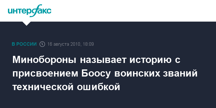 Минобороны называет историю с присвоением Боосу воинских званий технической ошибкой