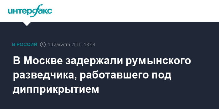 Москва. 16 августа. INTERFAX.RU - В Москве при попытке получения секретной военной информации задержан с поличным кадровый румынский разведчик, который работал под дипломатическим прикрытием в посольстве Румынии в РФ, сообщили "Интерфаксу" в центре общественных связей Федеральной службы безопасности (ФСБ) РФ в понедельник.