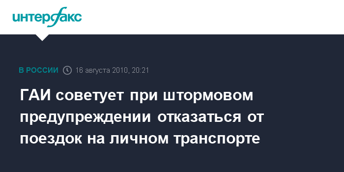 Москва. 16 августа. INTERFAX.RU - Госавтоинспекция России выпустила специальное обращение к водителям в связи с объявленным в ряде регионов штормовым предупреждением.