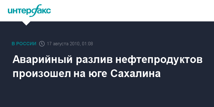 Южно-Сахалинск. 17 августа. ИНТЕРФАКС-ДАЛЬНИЙ ВОСТОК - На территории Долинского района Сахалинской области произошел разлив нефти, сообщает во вторник пресс-служба прокуратуры Сахалинской области.