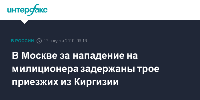 Москва. 17 августа. INTERFAX.RU - В Москве задержаны трое граждан Киргизии, подозреваемых в нанесении ножевых ран милиционеру, сообщил "Интерфаксу" во вторник источник в правоохранительных органах.