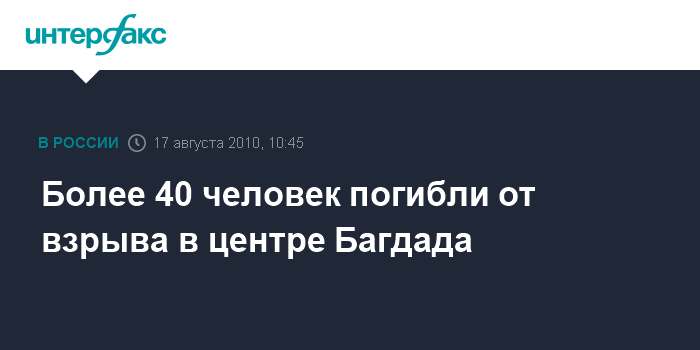 Лондон. 17 августа. INTERFAX.RU - Свыше 40 человек погибли в результате теракта на призывном пункте в Багдаде.