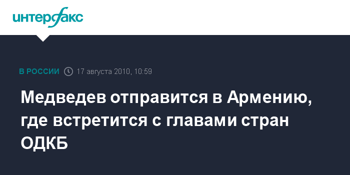 Медведев отправится в Армению, где встретится с главами стран ОДКБ