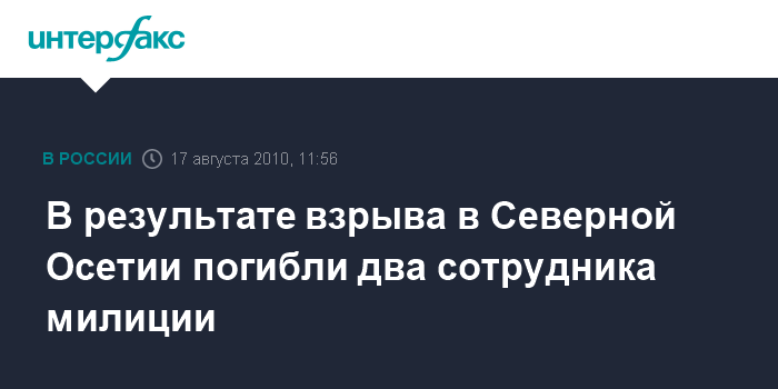 В результате взрыва в Северной Осетии погибли два сотрудника милиции