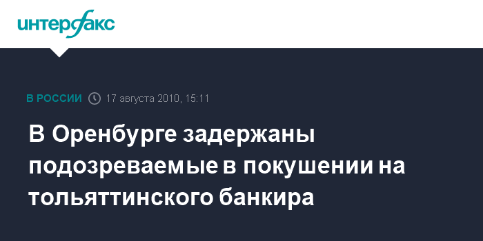 Самара. 17 августа. INTERFAX.RU - Сотрудники правоохранительных органов задержали в Оренбурге двух местных предпринимателей, подозреваемых в покушении на жизнь председателя совета директоров тольяттинского "АвтоВАЗбанка" Николая Тарана из-за невыплаченного кредита в 500 млн рублей.
