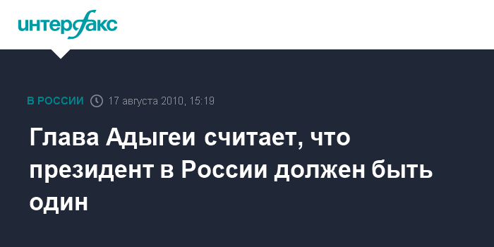 Глава Адыгеи считает, что президент в России должен быть один