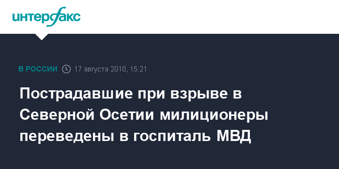Пострадавшие при взрыве в Северной Осетии милиционеры переведены в госпиталь МВД