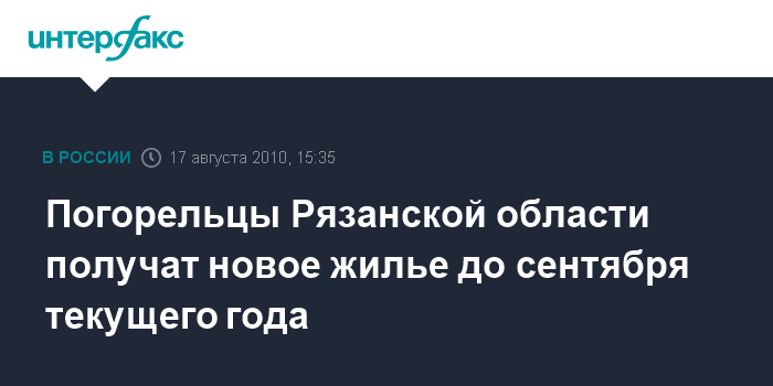 Рязань. 17 августа. INTERFAX.RU - Готовые квартиры жителям Рязанской области, пострадавшим от лесных пожаров, будет предоставлено до 1 сентября текущего года, заявил во вторник на брифинге губернатор региона Олег Ковалев.