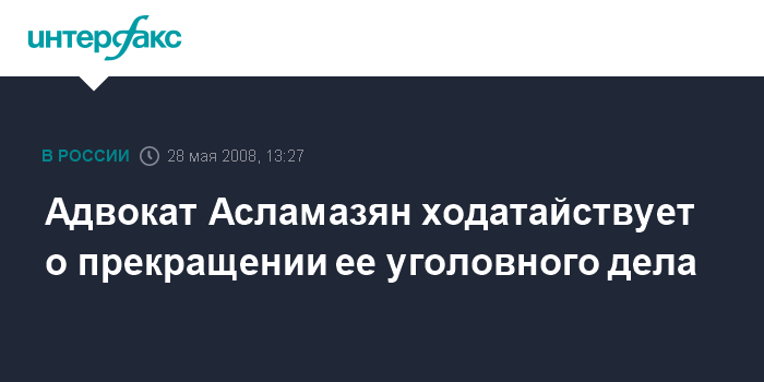 Москва. 28 мая. INTERFAX.RU - Виктор Паршуткин, адвокат главы фонда "Образованные медиа" Мананы Асламазян подал ходатайство в Следственный комитет при МВД РФ о прекращении уголовного дела в отношении его подзащитной. "Я подал сегодня ходатайство в Следственный комитет при МВД РФ о прекращении уголовного дела в связи с решением Конституционного суда России", - сообщил он "Интерфаксу", пояснив, что ходатайство подано в следственный орган, в производстве которого находилось дело Асламазян.