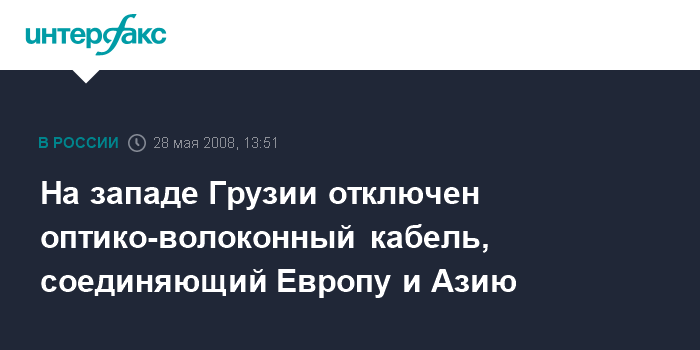 На западе Грузии отключен оптико-волоконный кабель, соединяющий Европу и Азию