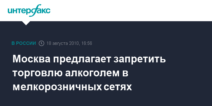 Москва. 18 августа. INTERFAX.RU - Столичные власти выступают за запрет торговли алкогольной продукцией в мелкорозничных сетях, заявила в среду журналистам исполняющая обязанности руководителя департамента потребительского рынка и услуг Москвы Валентина Варфоломеева.