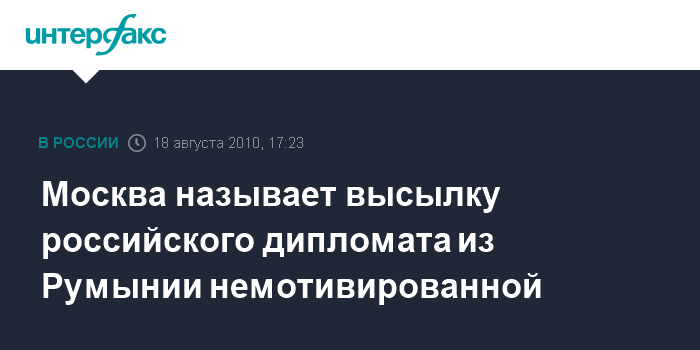 Москва. 18 августа. INTERFAX.RU - МИД России называет недружественным шагом высылку российского дипломата из Румынии.