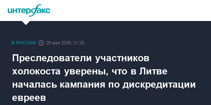 Вильнюс. 28 мая. ИНТЕРФАКС - Центр им. Симона Визенталя из Израиля, преследующий лиц, причастных к еврейскому геноциду, считает, что в Литве начата кампания по дискредитации лиц еврейского происхождения.