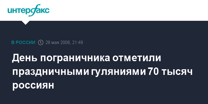 "По данным на 21:30 мск, в праздничных мероприятиях, посвященных Дню пограничника, в стране приняли участие около 70 тыс. бывших военнослужащих Пограничных войск", - сообщила "Интерфаксу" в среду вечером пресс-секретарь департамента обеспечения общественного порядка (ДООП) Ольга Шклярова.