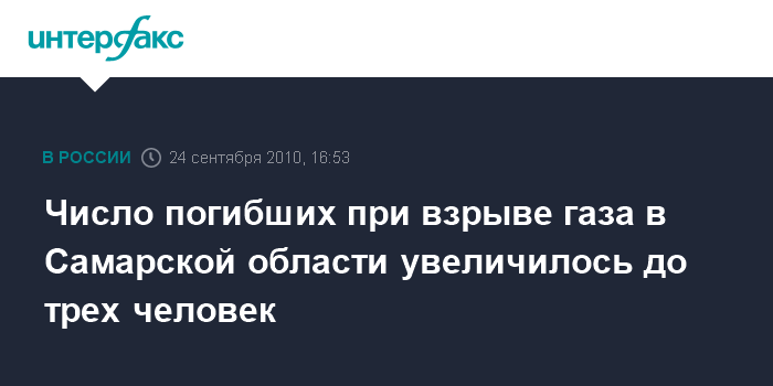 Самара. 24 сентября. INTERFAX.RU - В больнице Пирогова в пятницу скончался один из пострадавших при взрыве газа на трубопроводе в селе Черновка Самарской области, сообщила начальник пресс-службы СУ СКП РФ по Самарской области Елена Шкаева.