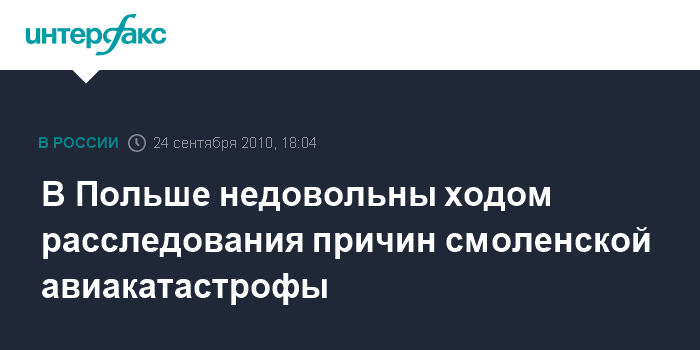 Варшава. 24 сентября. INTERFAX.RU - Поляки разочарованы российско-польским сотрудничеством в деле выяснения причин смоленской авиакатастрофы - таковы результаты опроса общественного мнения, проведенного польской социологической службой CBOS.