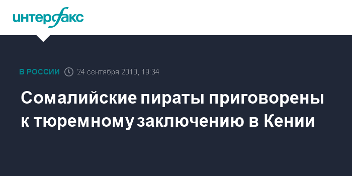 Лондон. 24 сентября. INTERFAX.RU - Сомалийские пираты приговорены в Кении к пяти годам тюремного заключения, передает в пятницу британская телерадиокорпорация Би-би-си.