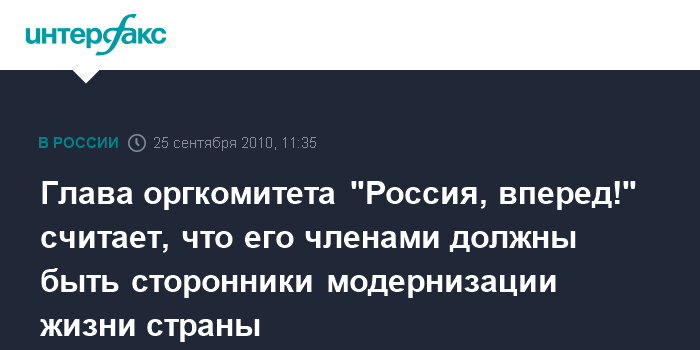 Глава оргкомитета "Россия, вперед!" считает, что его членами должны быть сторонники модернизации жизни страны
