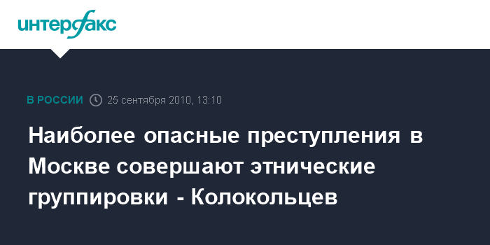 Наиболее опасные преступления в Москве совершают этнические группировки - Колокольцев