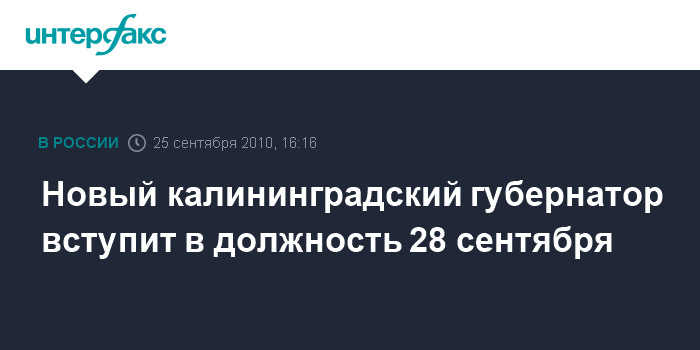 Новый калининградский губернатор вступит в должность 28 сентября