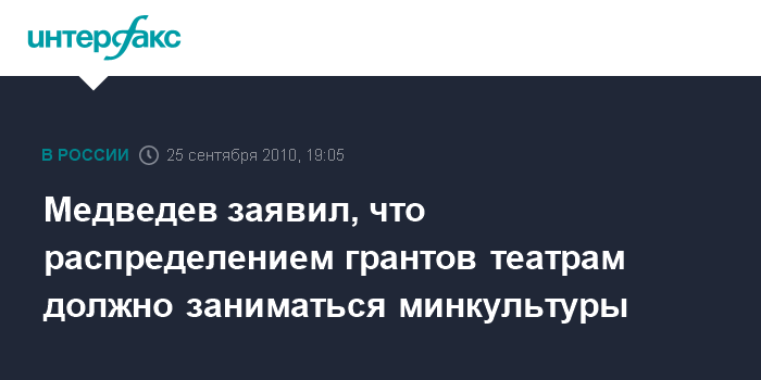 Медведев заявил, что распределением грантов театрам должно заниматься минкультуры